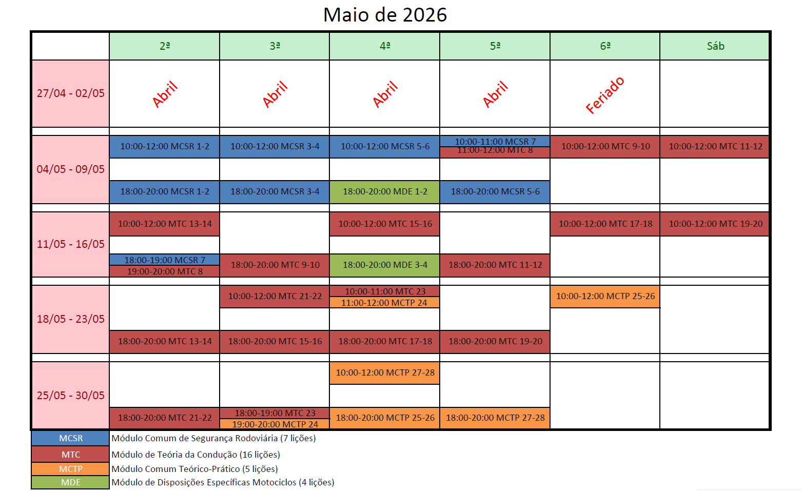 - Taxas de exames teórico e prático (ACP / IMT)