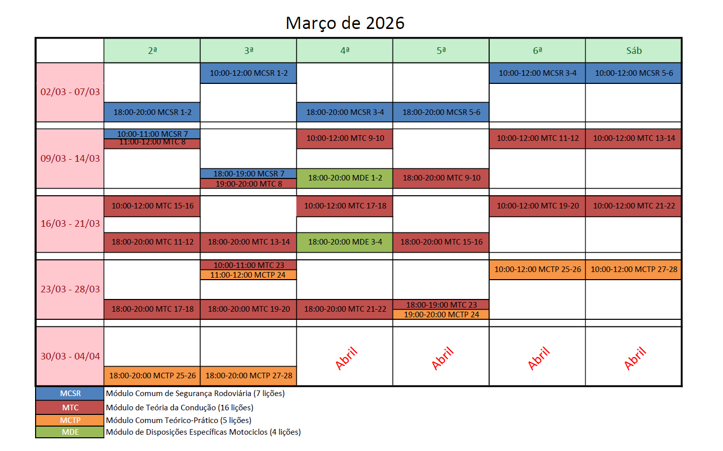 Segunda a Sábado: